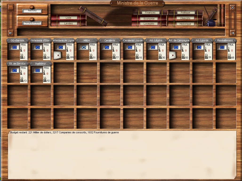 Une réorganisation de nos troupes en Italie est en cours afin de constituer une réserve de cavalerie et de diminuer les malus. Un manque de généraux de cavalerie se fait sentir, bientôt des officiers recevront leur prochaine affectation.