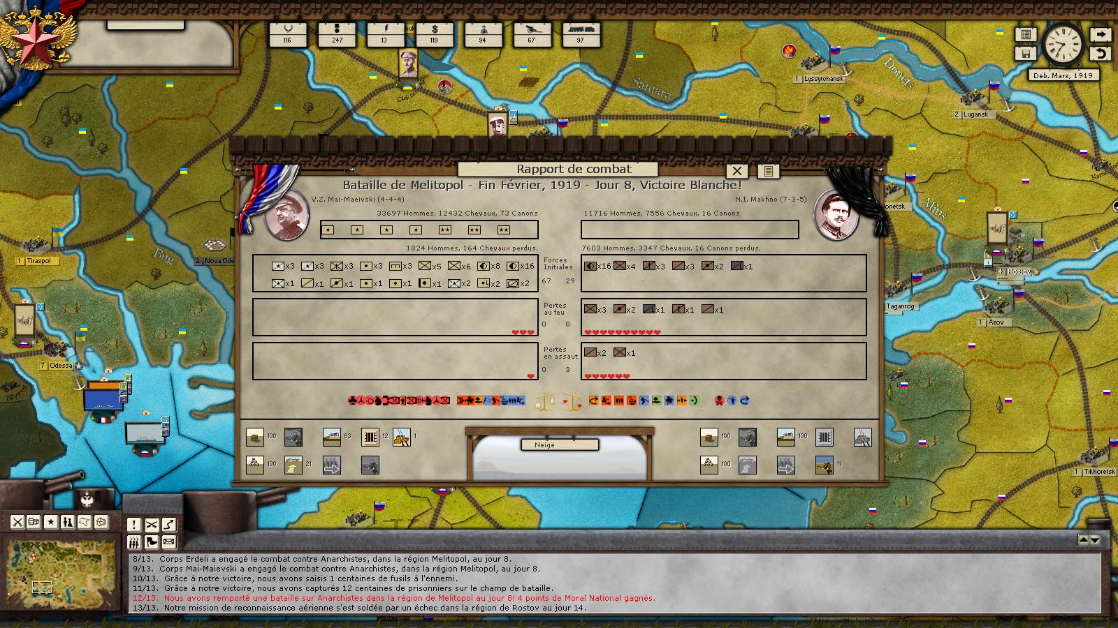 The first batch of my new features should ease Red task during the first months of 1918. If unbalance favoring Siberians pops up again after, I will just enhance effects of desertions and morale crippling I've implemented... :)