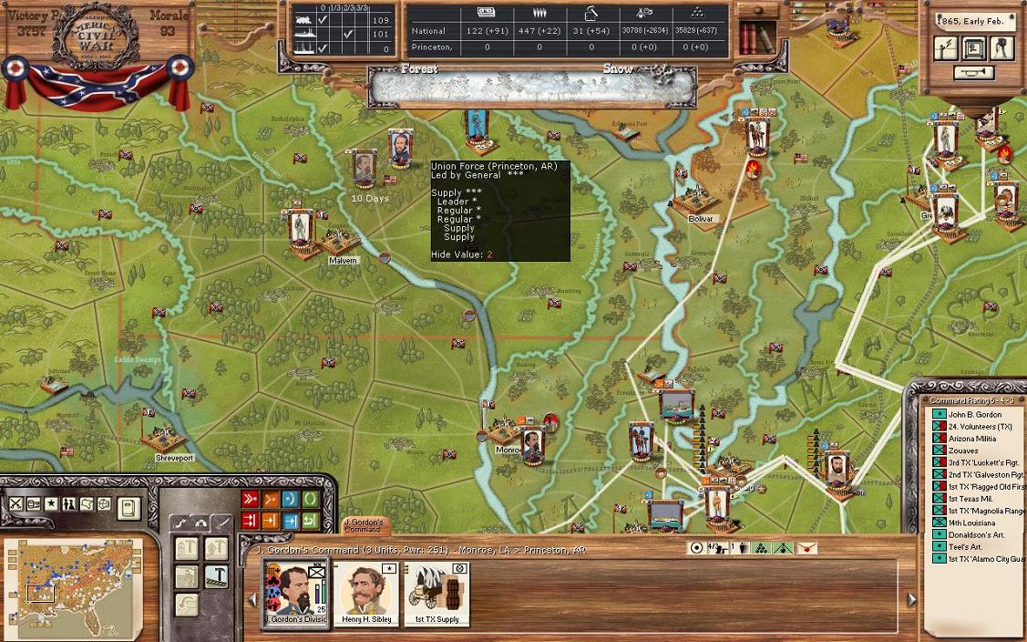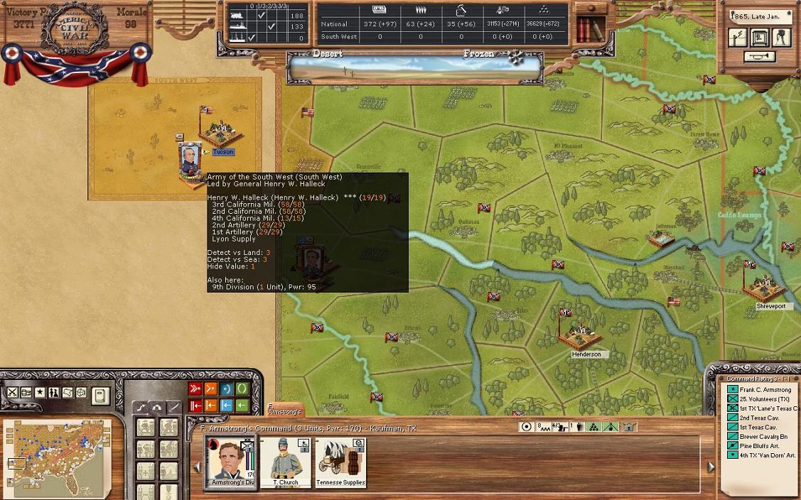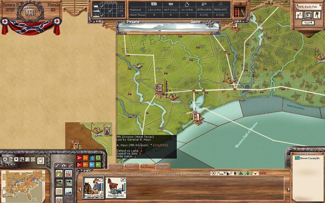 In Texas, the Union seems to content to hold its positions. A militia unit in Matagorda has unlocked; I’m sending it east to Price’s force in Galveston.