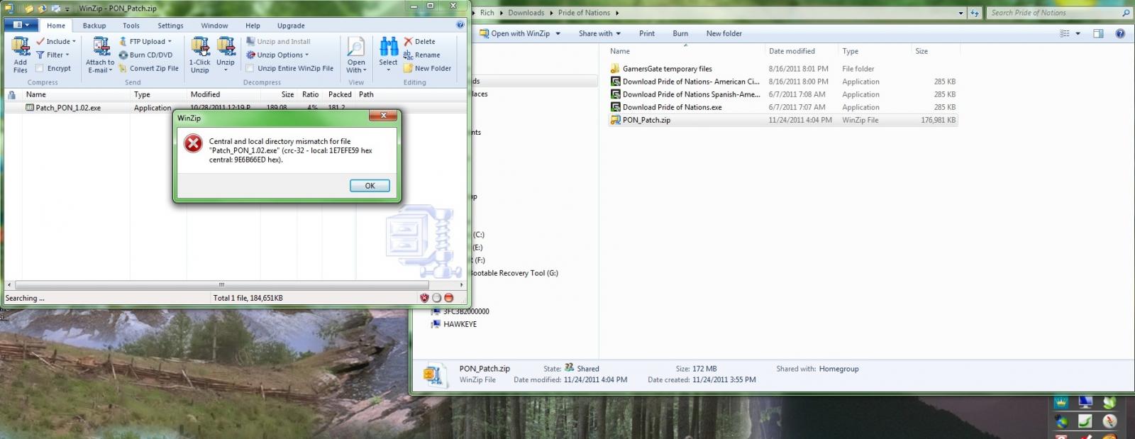 Warning: skipping "Patch_PON_1.02.exe". The 32-bit CRC stored in the local header for this file is not the same as the 32-bit CRC stored in the central header