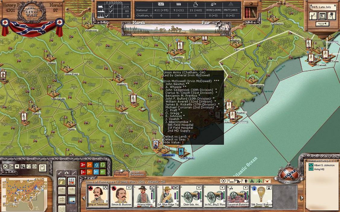 We'll know a lot more after the next turn on the Union's prospects. Can the Union break through Henry TN, and will General Bee and General Hampton hit Foster and Sherman hard. Should be exciting!