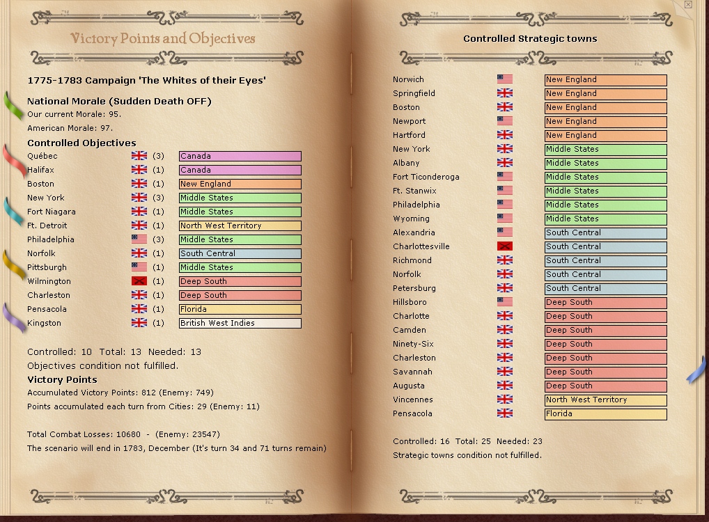 The armies in New England are resting for the moment in the hope that i can resume operations soon however a lot of the battalions are well below strengh.