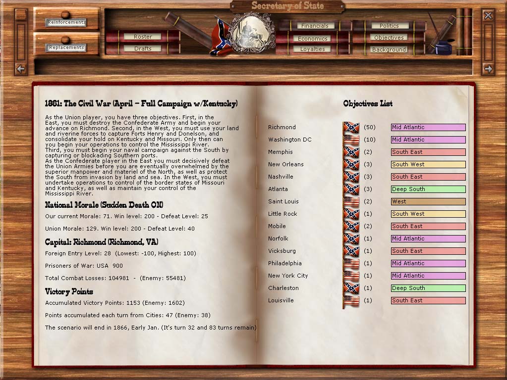 So, while the CSA seems to be dominant, it's way too soon to call the game. We're entering the phase where the Yanks get better generals and more troops, so anything can happen.