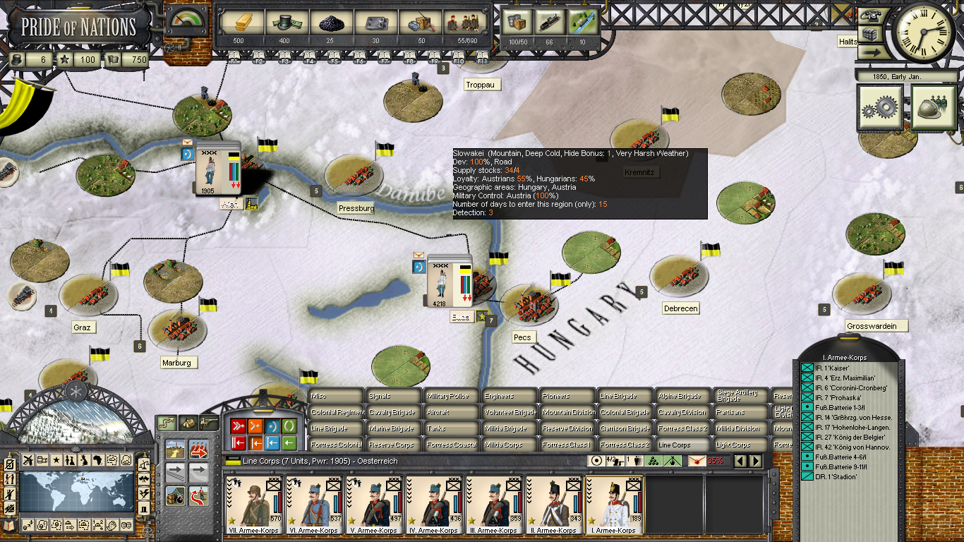 #2. New Force Pools. Matching what the nations fielded at their maximum size (basically up to 1914 levels), each nation will have a historic level of forces that they can raise, and the main limitation being that of available manpower. Nations like the United States will no longer have access to Corps unless they are at war with a major power (including the CSA).