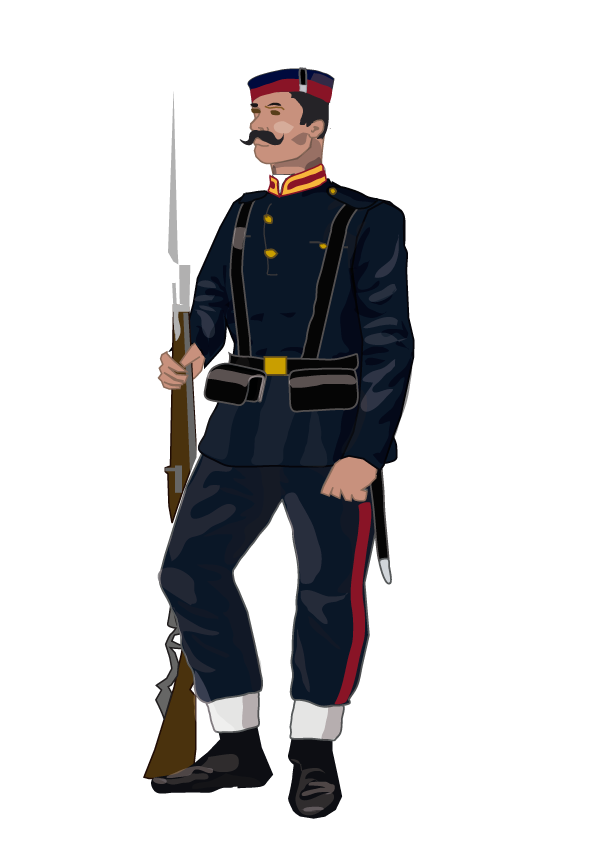 Os dejo una imagen para que veais una unidad colonial española de 1890 (el juego, como no tiene grafico para esa unidad especifica le asigna el dibujo de la unidad colonial de 1870).