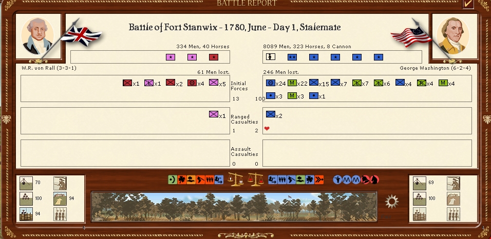 Well guys ive got a bit more time these days so back to the rebelion,General Washington is beseiging Fort Stanwix with a powerfull army but the German garrison under the command of Colonel Rall manage to hold him off,Washington moves off into the countryside.