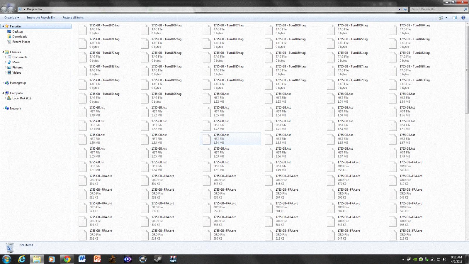 About recycle bin, yes that's normal, the game phases out the older turns (each turn is saved, even if you don't do it) and keep the last 3.