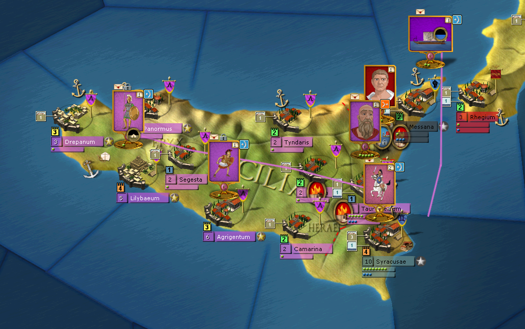 Otherwise, all quiet in Sicily. The Romans are licking their wounds in Catania/Tauromentorium and I'm going to force them to move to Camarina by holding in Henna.