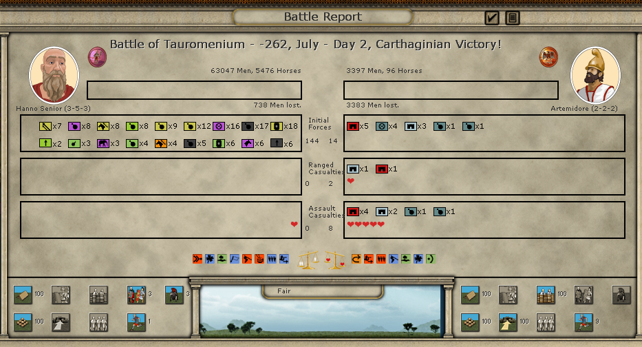 Otherwise, all quiet in Sicily. The Romans are licking their wounds in Catania/Tauromentorium and I'm going to force them to move to Camarina by holding in Henna.
