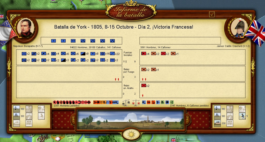Viendo ese mapa final de Inglaterra llena color azul y con mariscales napoleónicos llegando hasta Escocia, queda claro que lo de "batalla no decisiva" del resultado del escenario no es más que "propaganda" británica... Menuda paliza... ;)