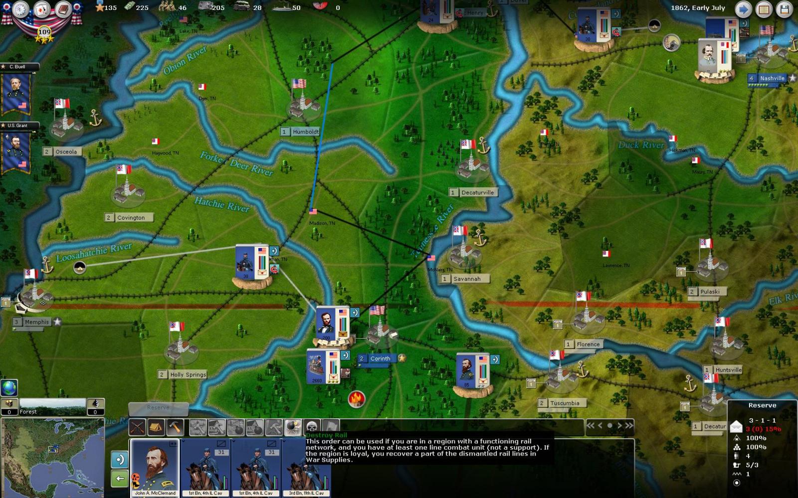 The first task is to reorganise Grant's Army of the Cumberland. I will then send out cavalry patrols to McNairy, Lake and Humboldt to try and find out where the CSA forces are located. I don't really want to go charging straight to Corinth as I don't know what is there yet.....