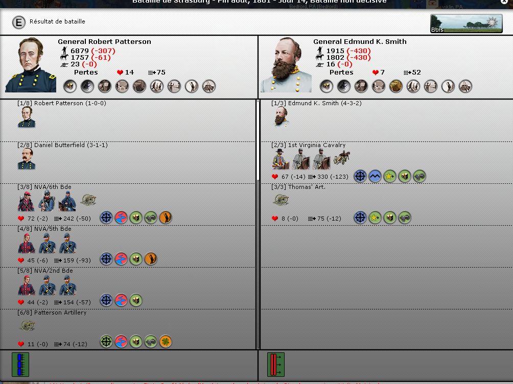 Je ne peut plus voie une partie d'unité perdu ou non chez l'adversaire, par exemple un carré d'infenterie du régiment d'infenterie qui se trouve dans un bataillons, vue qu'il m'appraisser comme plus cher de devoir remplacé une unité supprimé qu'une deux unité affaiblie, ça m'aidé beaucoup en PBM pour estimé qui était le réelle victorieux de la bataille côté coût et valeur stratégique de la bataille.