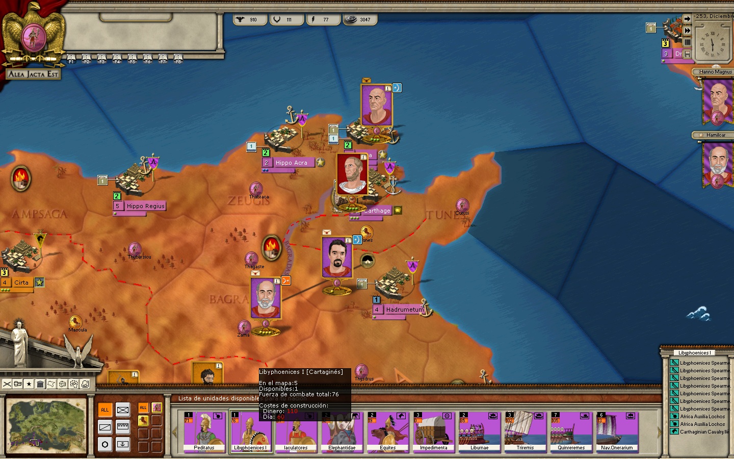 Hola amigos, estoy jugando en la primera guerra punica y no puedo reclutar nuevas fuerzas ni en Africa ni tampoco en Sicilia, estoy hablando de fuerzas cartaginesas, sin embargo si puedo barcos, parece un error.