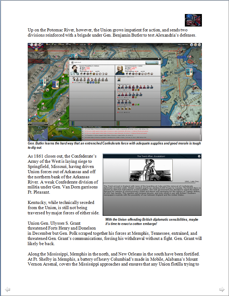 great read, lots of shifts in terms of dominance, especially at the end of 1861. Interesting to see that if the Confederates divert the resources for a long war, they run the risk of losing it in the short term
