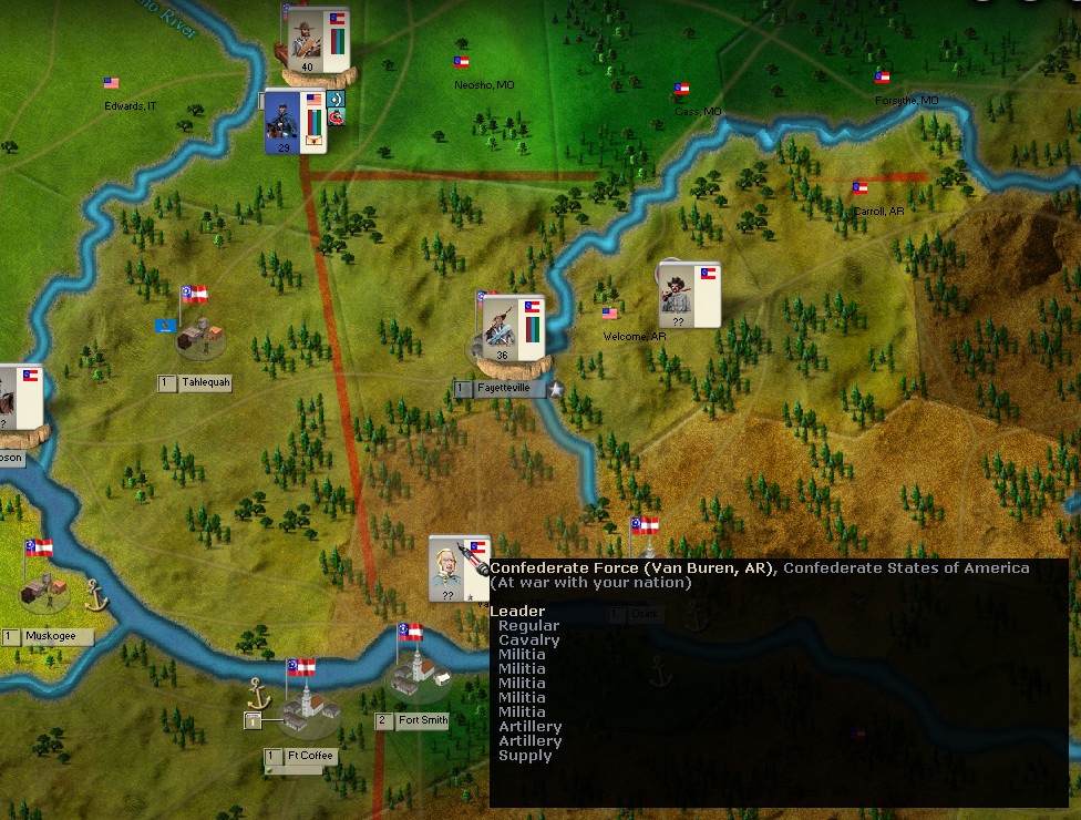 Lyon will need reinforcements if his Tennessee Campaign is to succeed. I'll scout for the possibility of opening a second front on Island No10. Invading KY is always an option as well.
