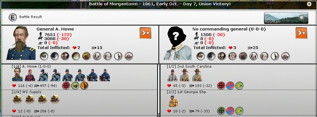 First casualties of the war, small Union force managed to take Harpers Ferry. The rebels turned tail as soon we reached their lines, as the tooltip says :)