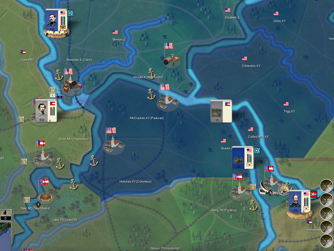 Lyon will need reinforcements if his Tennessee Campaign is to succeed. I'll scout for the possibility of opening a second front on Island No10. Invading KY is always an option as well.