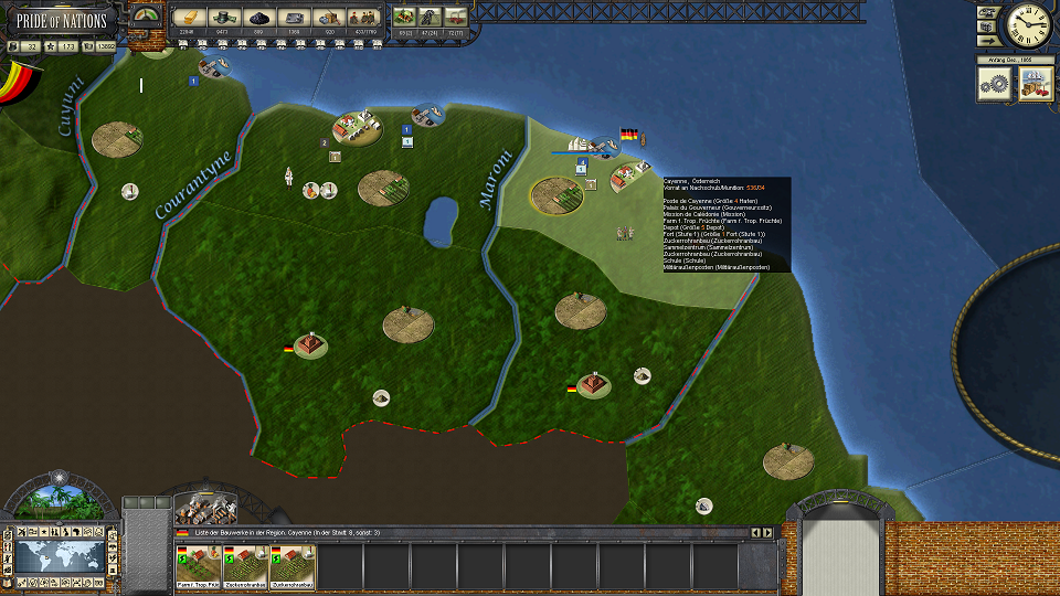 Colonial affairs are nice, no own colony has yet been established but 3 colonies have been gained in war (see above) and the Ivory Coast should become a colony within the next years after the unification. We are anxious to see if our newly created Holy Roman Empire will also obtain the future German colonies in Africa, especially Zanzibar which would supply some opium.