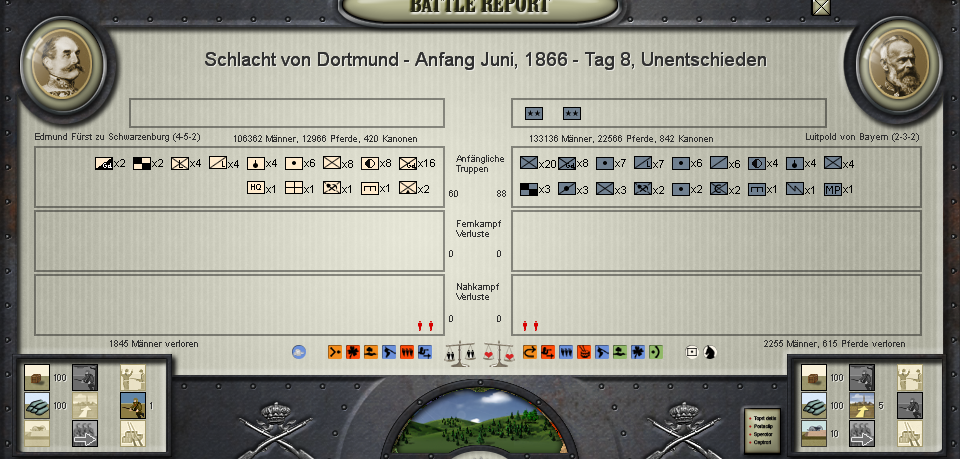 In between, the Bavarian army is led by von Clam-Gallas on an advance on Erfurt, this move is half diversion and half an alternative try to seperate Prussian east from west. Von Clam-Gallas is not expected to win against same or bigger sized enemy formations.