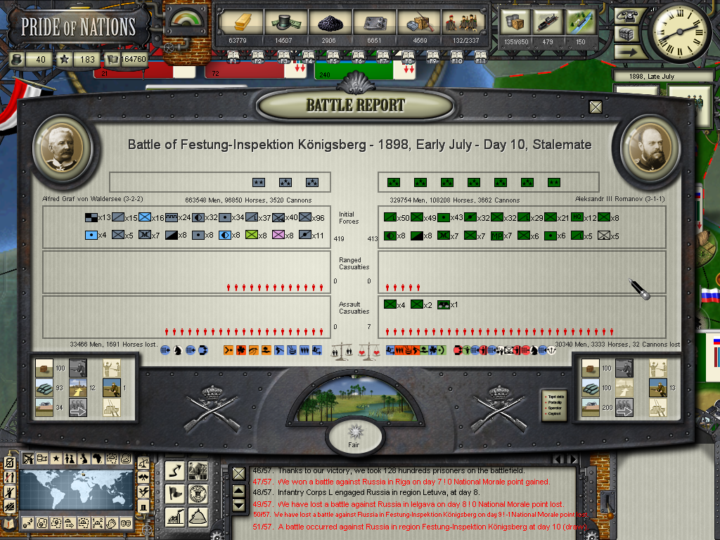loki100 wrote:well done at Koenigsberg, that is the advantage of luring the AI onto a large fort ... it will attack with full commitment and that means you get the sort of battle sequence where heavy losses feed into lots of lost elements, thus pruning a huge stack down to a manageable size.