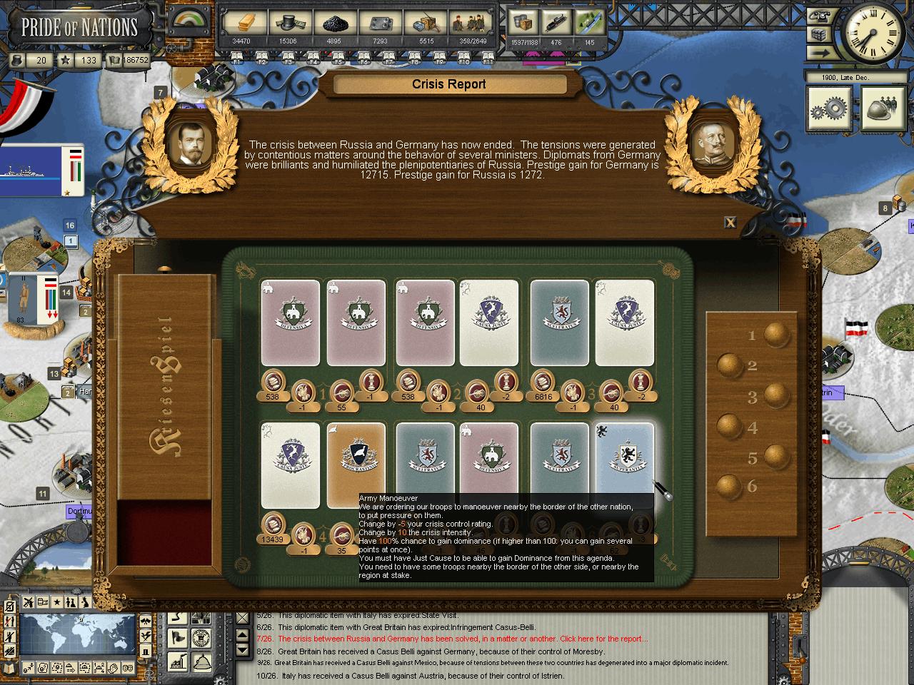 Kensai wrote:The AI makes choices according to warscore accrued. In the end it took what it could "buy" with that score. Unfortunately, it does not seem to factor in SOIs to that calculation. A more complex version of peace treaty negotiations (possibly coming in a future Gold version of the game?) could take this and other things into consideration.