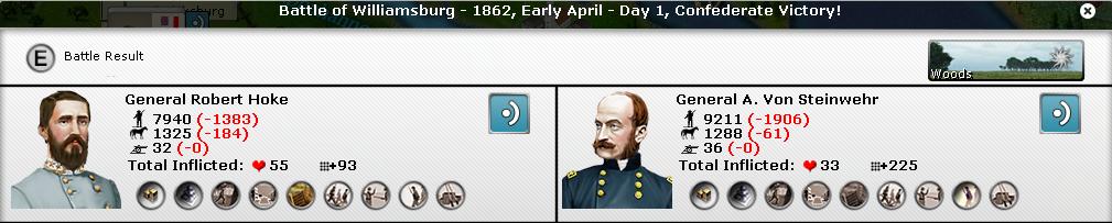 I moved my forces in order to occupy the southern edge of the Potomac river, besieging HF and Alexandria.