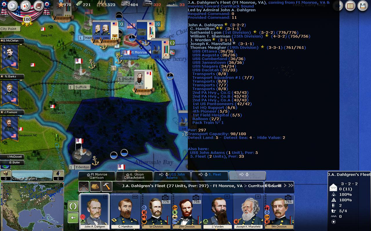 P.S. I've captured Hampton Roads and Strasburg according to plan, but my partisans have not blown up any depots yet. Although, I am inclined to believe that Mickey3D wisely blew up the depot at Strasburg and fell back in response to my advance up the peninsula. On to Williamsburg.