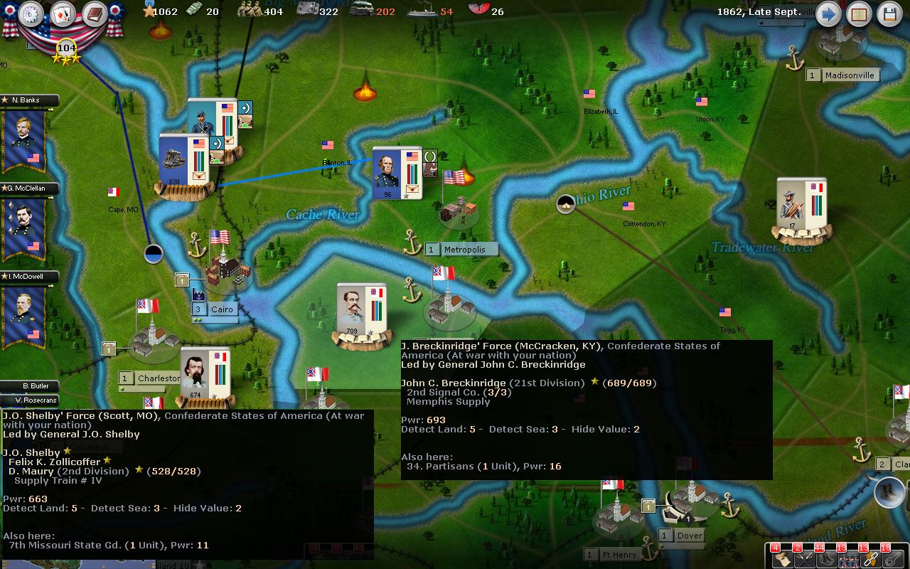 pgr wrote:It will be interesting to see how things develop. I do wonder (way back to your first post), why you went to the trouble to build Mid-West cav to blow up your own level 1 depots North of the Ohio (that and the move to NYC seems a bit skittish really).