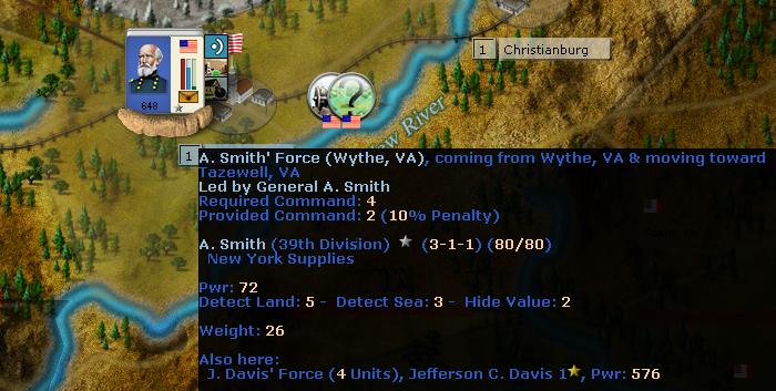 I have a Division entrenched in Wythesville VA that had slipped through Tazewell from my base in Prestonburg KY.