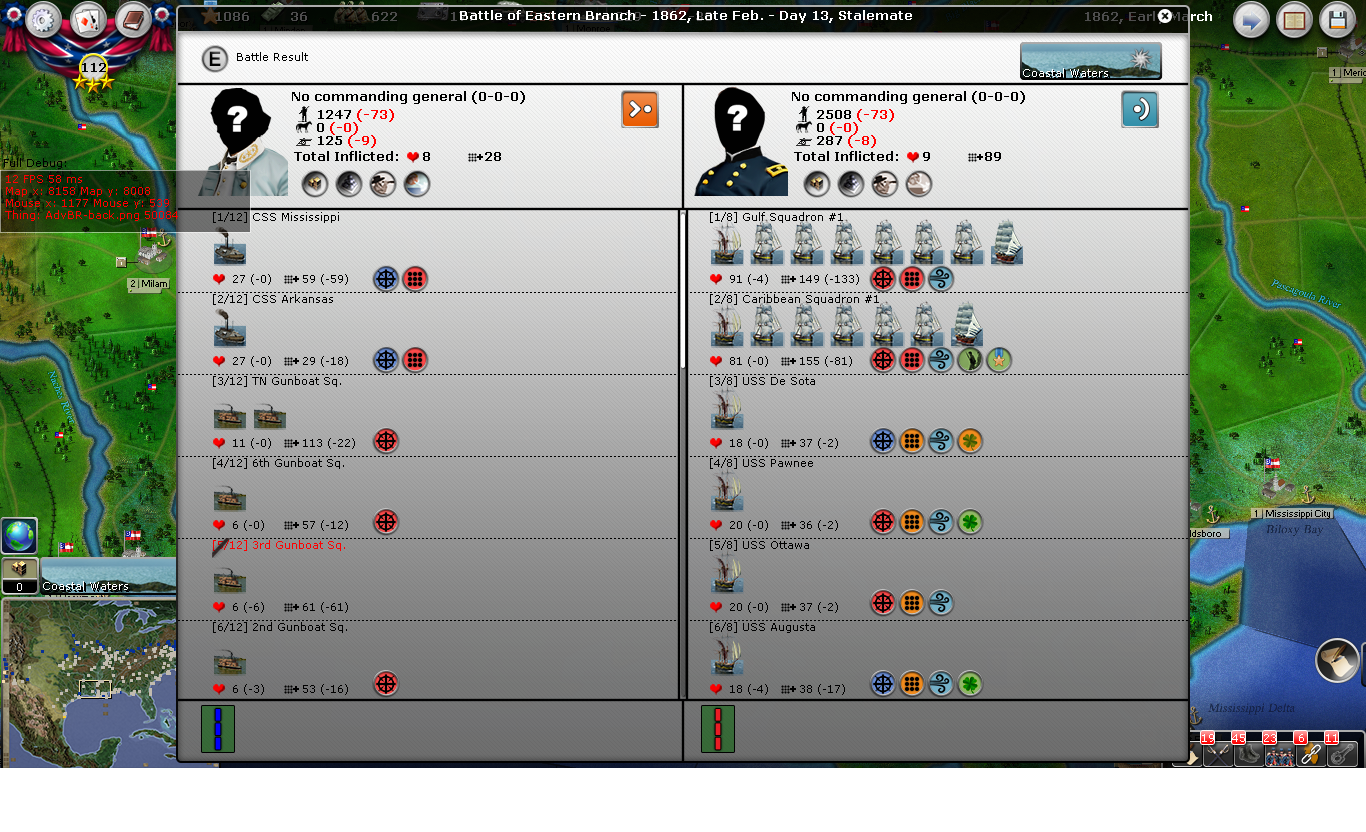 tripax wrote:Athena has the full activation bonus; I usually turn her all the way up. If I continued this AAR beyond April 1862, you would see my East crumble and I would lose. It always happens when I play as a confederate. Part of this test is to see if it still happens, which tells me that the changes don't greatly effect balance. I'm in mid 1862 now (and I've stopped taking screenshots, so I know this AAR will finish after a year in-game), and things are still going ok.