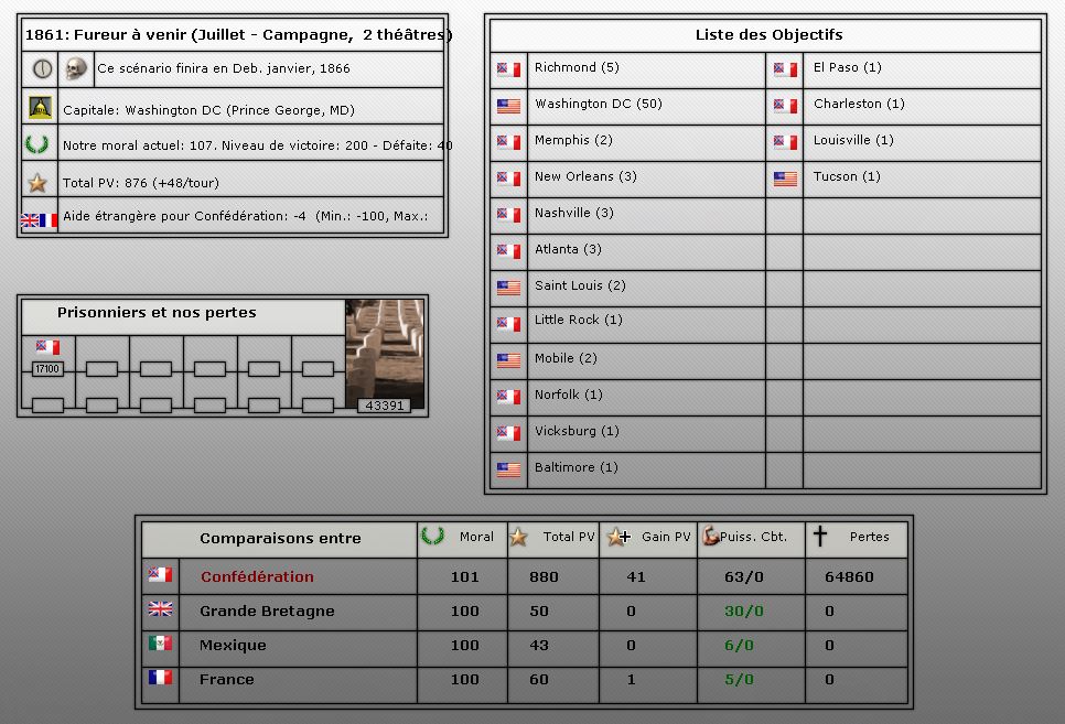 Ace wrote:April61 to July61 turns are ideal to get to know your opponent. July scenario throws you right in the middle of the action without knowing your opponents style of play. I don't mind extending it few turns, so the game can run from April 61 to LateJuly63 (after playing EarlyJuly63 turn - Gettysburg and Vicksburg dates). It should be enough for cautious and aggressive players alike.