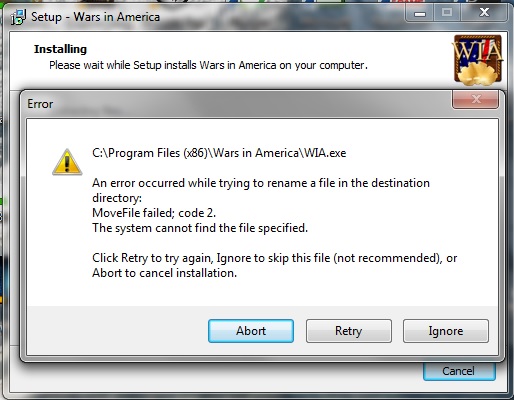 The other day I tried to start BoA2: WiA. It said the WIA.exe file was missing. So, I deleted and reinstalled. Still missing.