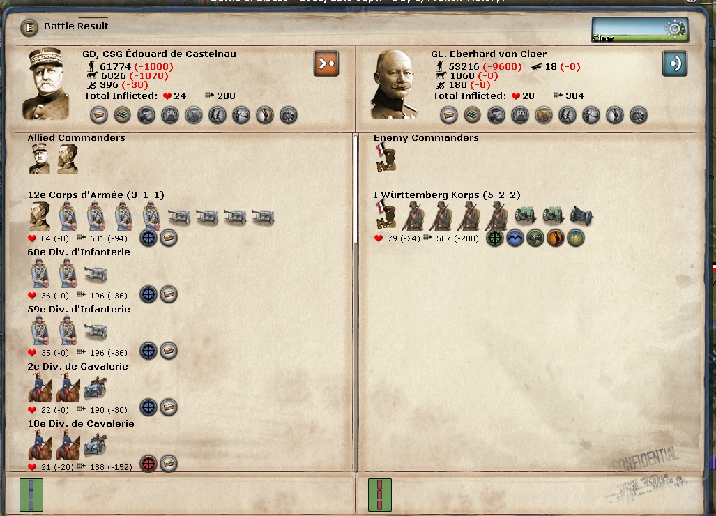 Battle of Elsass. General Castelnau commanding. Still not getting any NM for lopsided battles. I think the artillery was brutal for this battle.