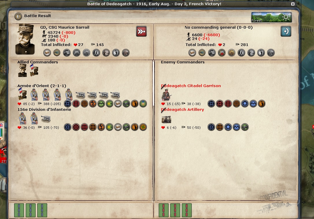 And we assaulted and captured Dedeagatch. Also, the new corps has arrived and after a little reorganization, it is now basically two corps to take advantage of CP points that were being lost. I'll have them move East then NE to attack toward Constantinople, which is the Jewel in the Turkish Empire. It's a major objective for us.