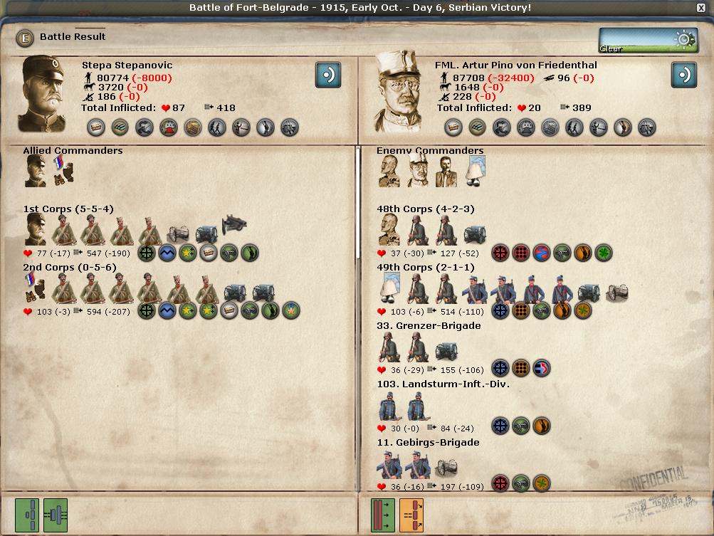 Aside from a couple of skirmishes, this is the first real attempt by the Austrians to take Belgrade. While unsuccessful, it does make me realize that Serbia has not been forgotten.