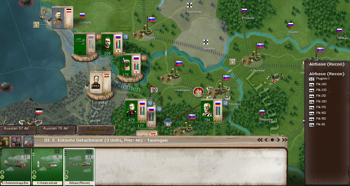 One of my five armies surrounded west of Kowno manages to break free, other four have to retreat. The next option is to try north, through Wladislavow and Middle Niemen river.