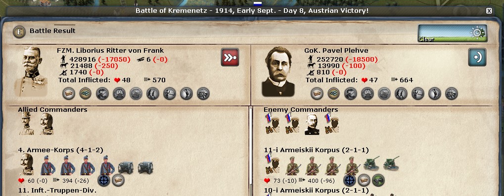 Austrian generals are not the best, but they used sheer numbers and force concentration to push the Russians further inland.