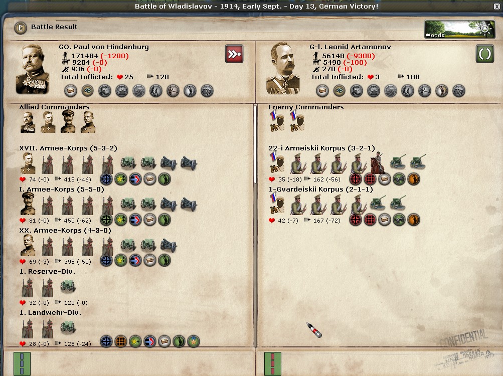 I got a win in the Ardennes, but not the breakthrough I was hoping for. Sheer size of my heavy artillery carried the day for me, but I doubt it will lead to anything useful in the West. The best I can do is grab some solid defensive terrain before we all entrench.