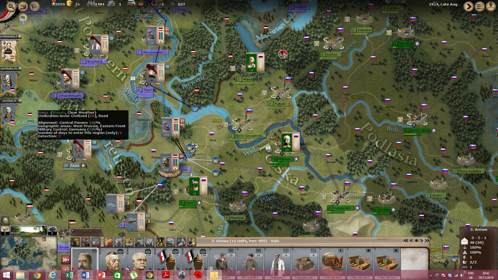 In western Poland Von Hausen takes Lodz and I swing another corps east to open up the way to Warsaw...