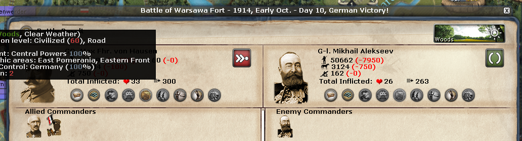 Meanwhile along the Austrian front everything is quiet except for a major contest for Ivangorod. The Austrian 1st army wins the battle but not convincingly as the Russian army is still in the field and defending Ivangorod.