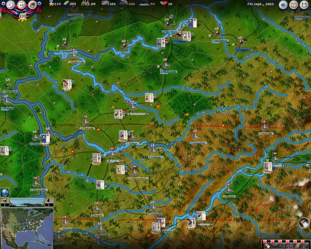 All the generals were active, Saint Louis was besieged and isolated, the main force under Polk could reach it before any Union's reinforcement : I was confident that Saint Louis would fall the next turn.