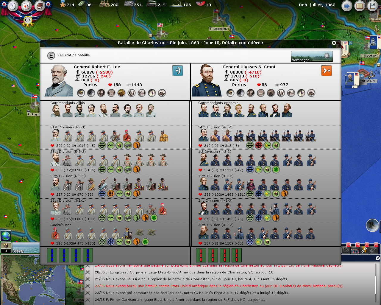I managed to save Forrest's troops : they dodged Union's troops and reached New Orleans. They were send to Fort Jackson where the siege was in a deadlock.