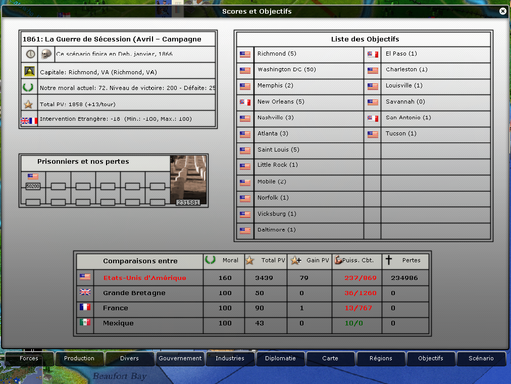 I add the scores and objectives screen for this 55th turn, for comparison purpose with my next post.