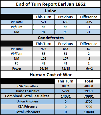 Very costly turn for the South. The total NM change is only 4 NM instead of the full 10 NM that was expected. And it’s hard to beat that kind of a casualty ratio. CSA power dropped for the 2nd straight turn and is down a full 8 points from a month ago.