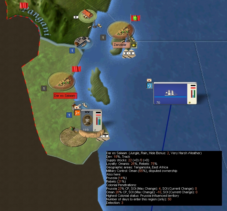 Prussia 1850. The Nation is content, our economy is nearly self-sufficient, the army starts getting a bit rusty. Out of we start a colonial adventure near Sansibar.
