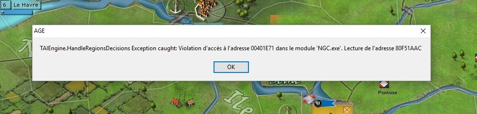 Pocus wrote:I have played the turn and got no crash. If you are prone to crashes, then try first to exit the game and retry the turn. If the bug is still there, that's for me and I'll check the saved game. If not, then it is almost impossible to fix the bug as it can be caused by an hardware issue or an incompatibility between the DirectX library we use and your system.