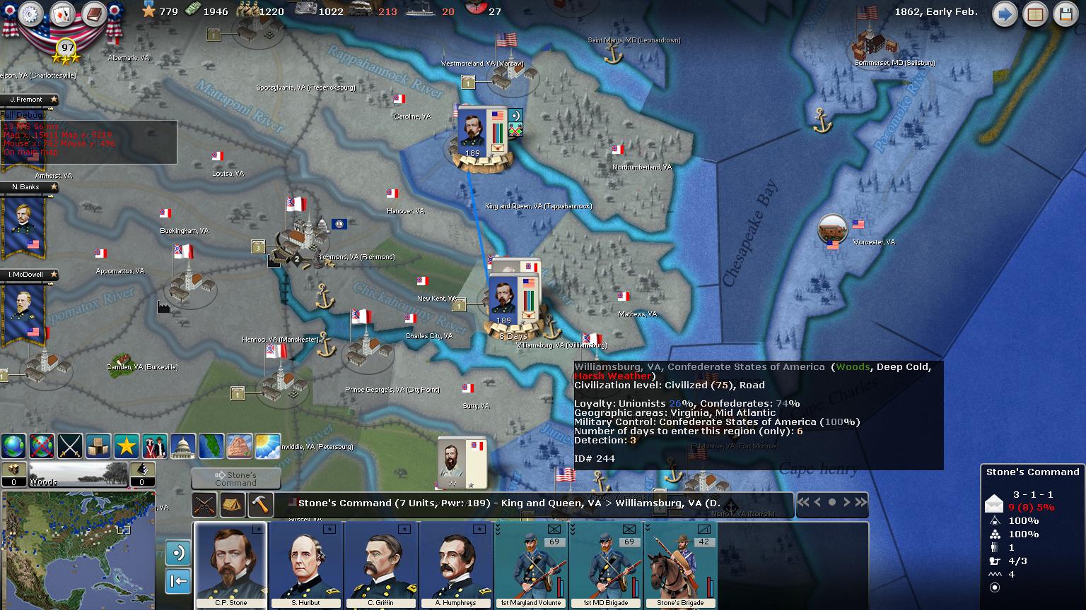 When Williamsburg falls, this is a direct shot to the outskirts of Richmond. Lets see what the Rebs do to counter Stone if they even pay attention to him.