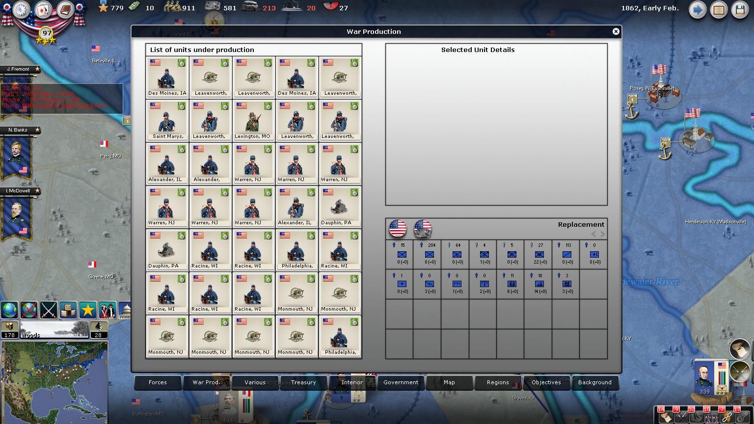 To get the upper-hand in the far West, we will build forces and sweep through New Mexico and into El Paso which is a strategic hold. Tuscon is also a possible city to invade in the near future.