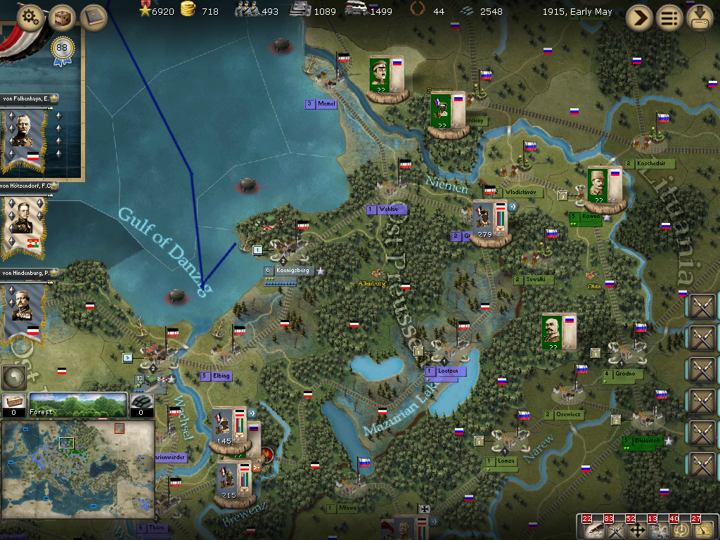Baltic States: Nothing really happened. The Russians split off their larger force in Wladislavov and reinforced Kowno somewhat.