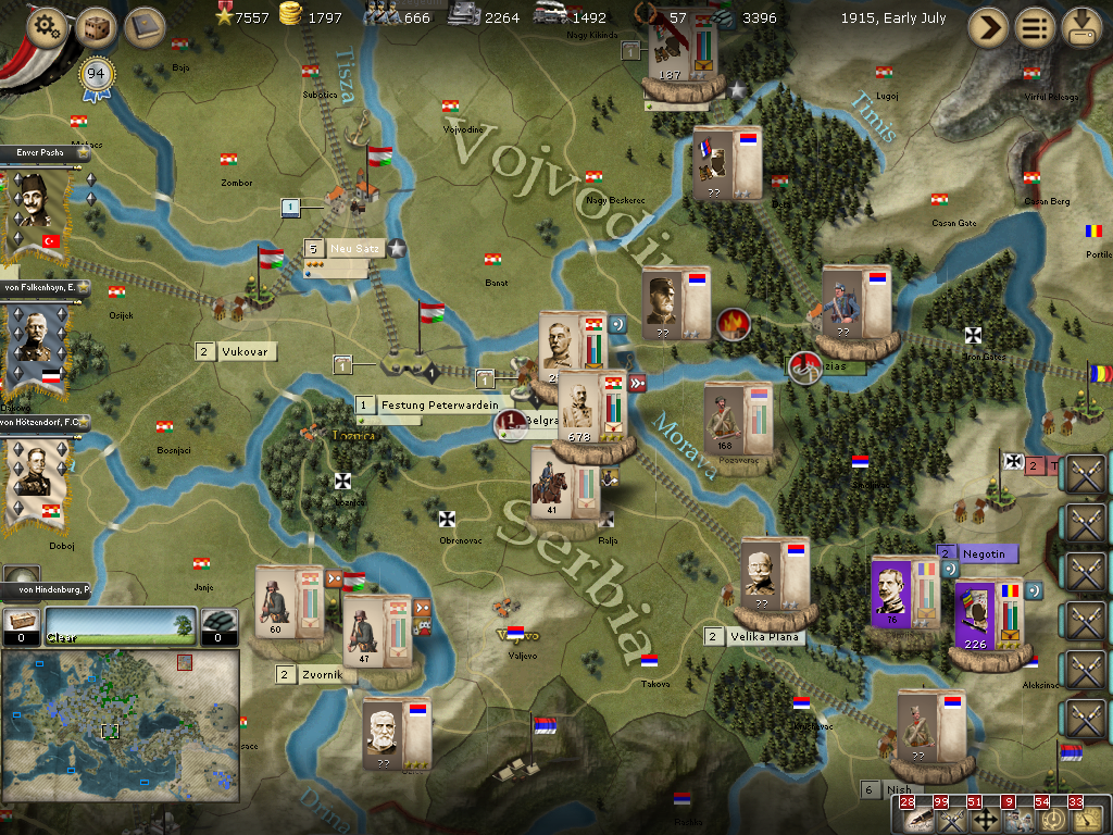 [color="#8B4513"]Serbia:[/color] Inactive leaders are preventing the defeat of what appears to be the last two forces in Serbia, which is mainly a 241 PWR Russian korps in Pristina.